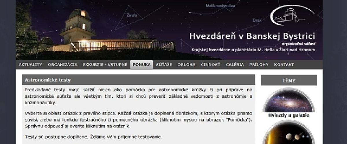 má hvezdáreň v Banskej Bystrici má na svojej stránke http://www.astrobb.sk/testy.php