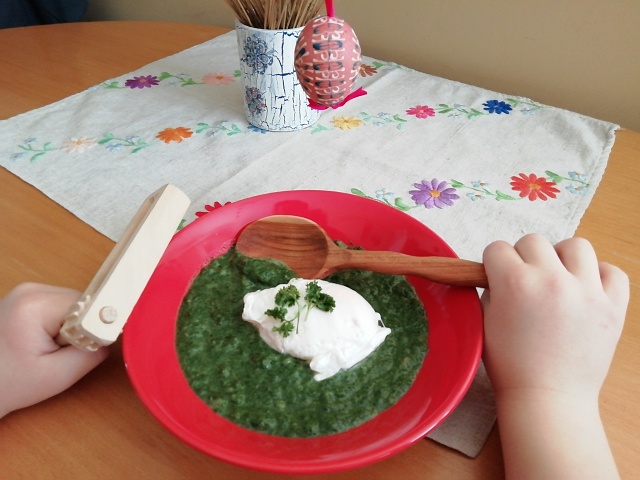 Na Veľkonočnú nedeľu už mali dievky prichystané kraslice – jednoducho zafarbené cibuľovými šupami alebo kupovanou farbou.
