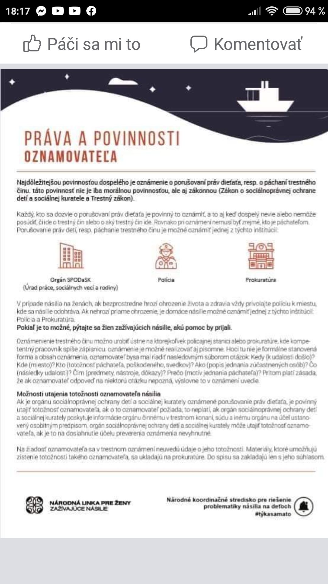 alebo ak takéto násilie sledujete u svojich susedov, známych, prelomte svoj strach, mlčanie a povedzte to niekomu, komu dôverujte.