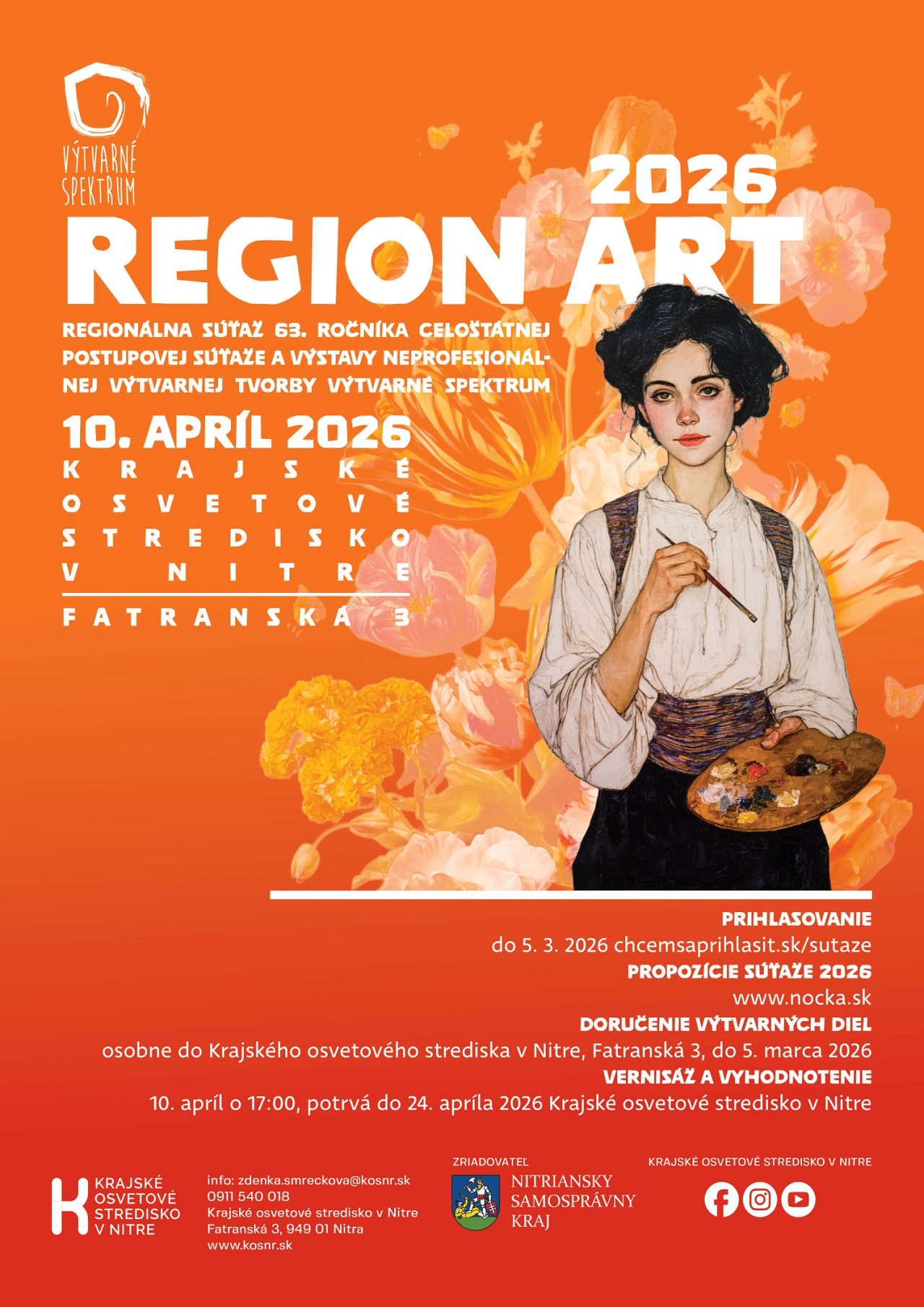 Krajské osvetové stredisko v Nitre pripravuje regionálne kolo Region art 2026, 63. ročník celoštátnej postupovej súťaže a výstavy neprofesionálnej výtvarnej tvorby Výtvarné spektrum.