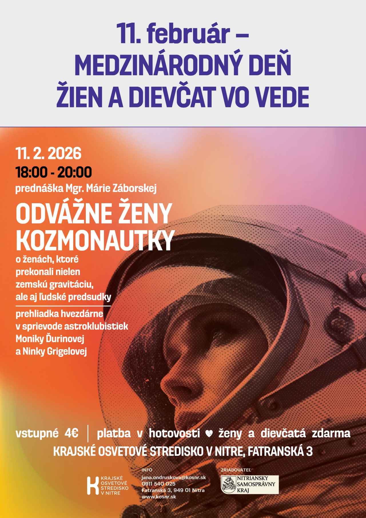 - prednáška Mgr. Márie Záborskej o ženách, ktoré prekonali nielen gravitáciu, ale aj ľudské predsudky