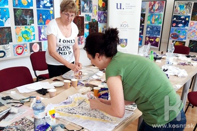 Účastníčky si vyskúšali farbenie bavlneného, prírodného podkladu, tričiek. Po vytvorení rezerváže skladaním a viazaním textil farbili. Postupne tvorený dekoratívny obraz dostával špecifický výraz vďaka postupnému namáčaniu vo farbách. Obraz na bavlnenom plátne ožil až po rozviazaní a odstránení rezerváže. Zúčastnení sa naučili skladať, viazať a vkladať predmety, využívať šablóny, vytvoriť obraz savovaním, nanášať farby na textil. Výsledkom bol originálny dekoratívny textil, tričko.