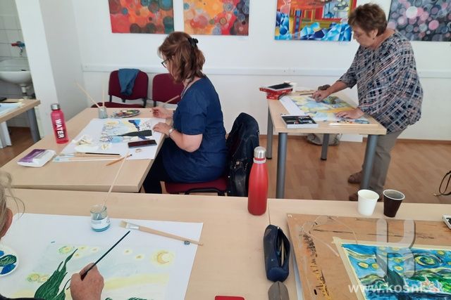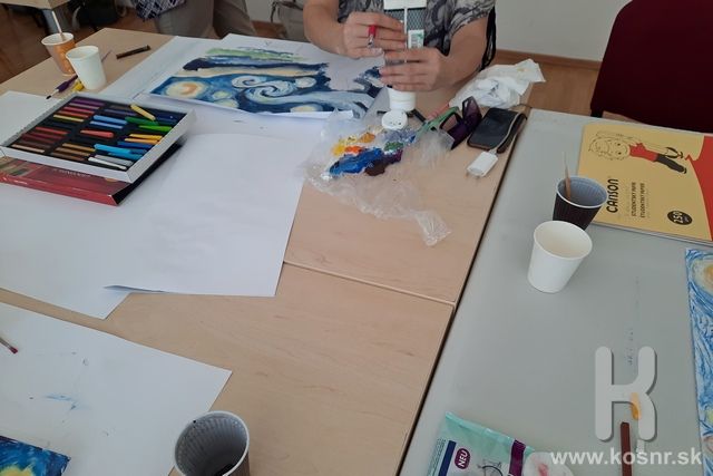 Účastníci workshopu sa v úvode zúčastnili interaktívnej prednášky a rozobrali dielo Hviezdna noc od Vincenta van Gogha. Lektor. Mgr. Peter, Rehák vysvetlil v jednoduchosti teóriu farieb, techniku maľby a cieľ workshopu - interpretáciu umeleckého diela. Zamerali sa na hravé, inovatívne stvárnenie a individuálne dotváranie, na zmenu kompozície, farebného presahu. Techniku maľby si zvolil každý účastník sám - akvarel, akryl aj suchý pastel.