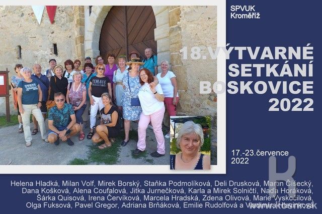 Pozývame na výstavu výtvarných diel kroměřížskych výtvarníkov a ich priateľov, ktoré dokumentujú a prezentujú tvorbu z ich výtvarného plenéru od 17.-23. júla v Boskoviciach.