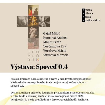 do spoločenskej miestnosti Krajskej knižnice Karola Kmeťka v Nitre, Fraňa Mojtu 18, Nitra. Výstava, ktorá vznikla pod odborným vedením MgA. Daniela Brogyányiho.